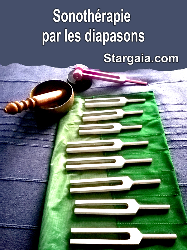 Dans un soin par les diapasons, la gamme de leurs fréquences sonores est utilisée pour débloquer, stimuler et harmoniser les chakras, à l’avant et à l’arrière du corps. Il inclut également une double tonification avec 2 diapasons vibrant de chaque côté des oreilles.